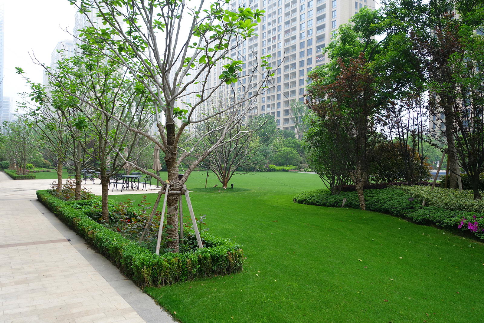 高達45%的綠化率,讓項目擁有“第一品級園林”的稱號:20000平米的景觀長廊,12000平米中心景觀花園,2000平米開放式大草坪…….