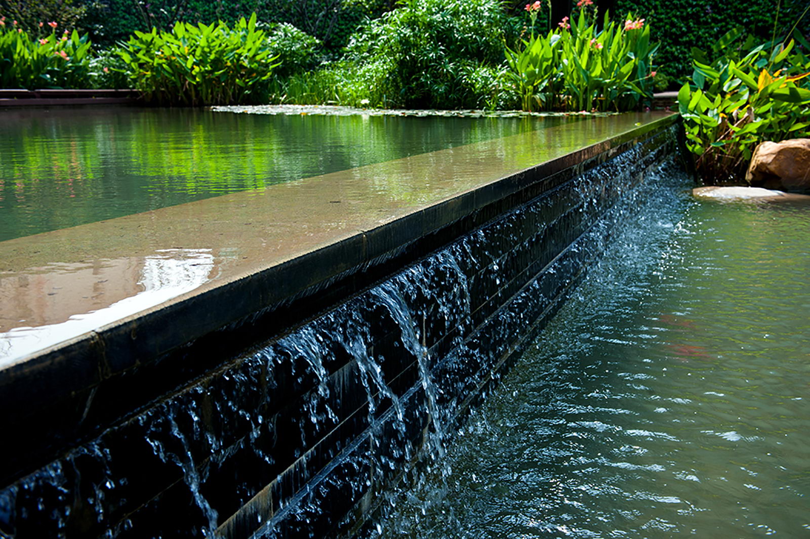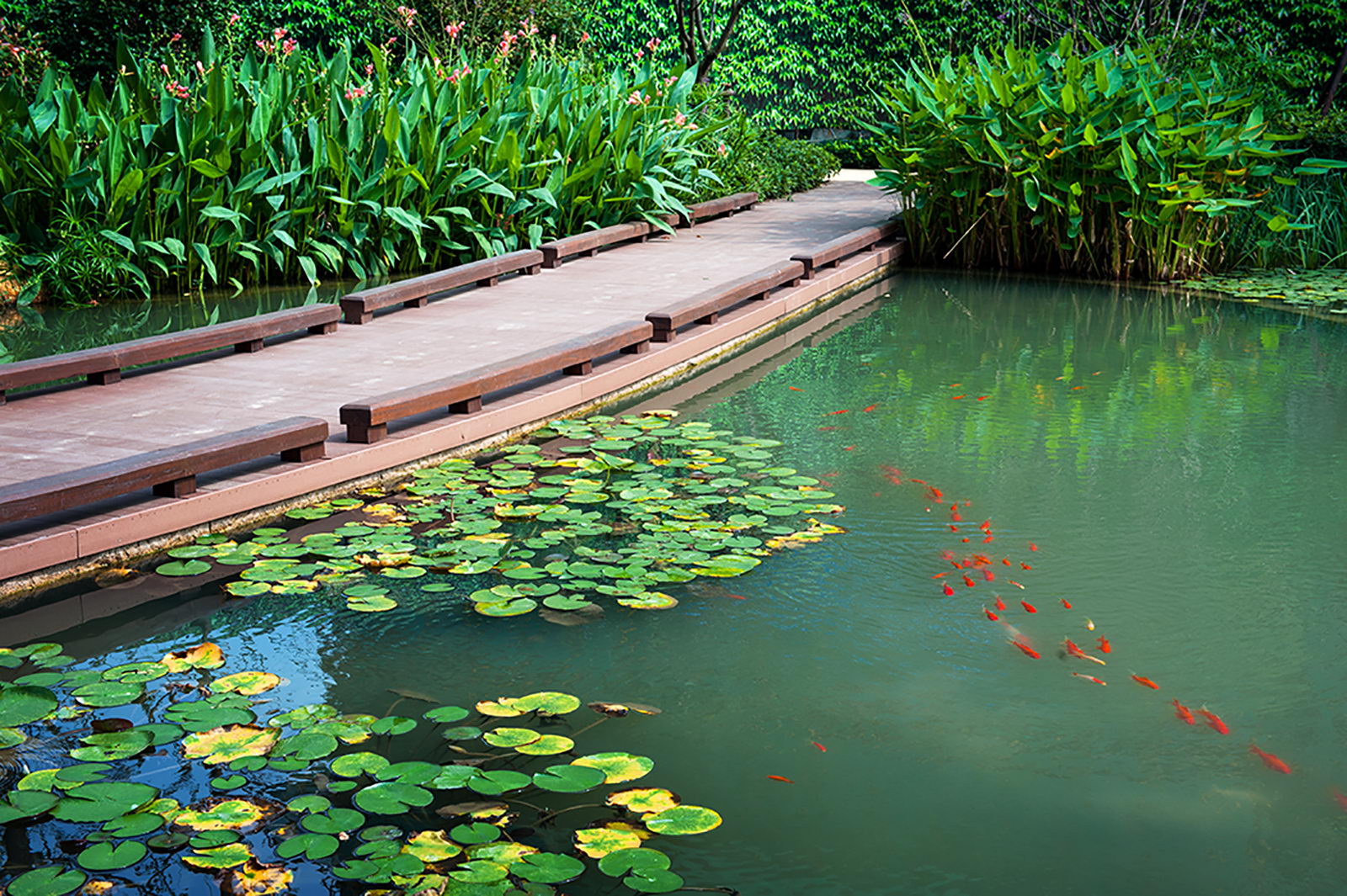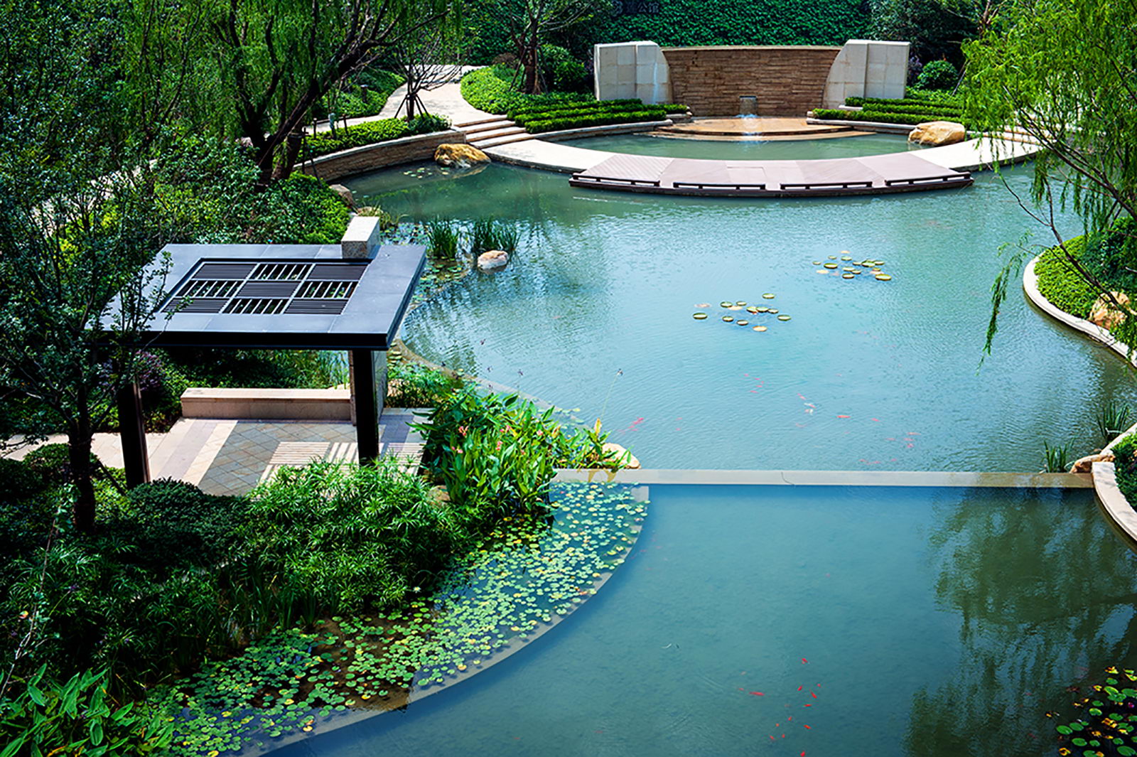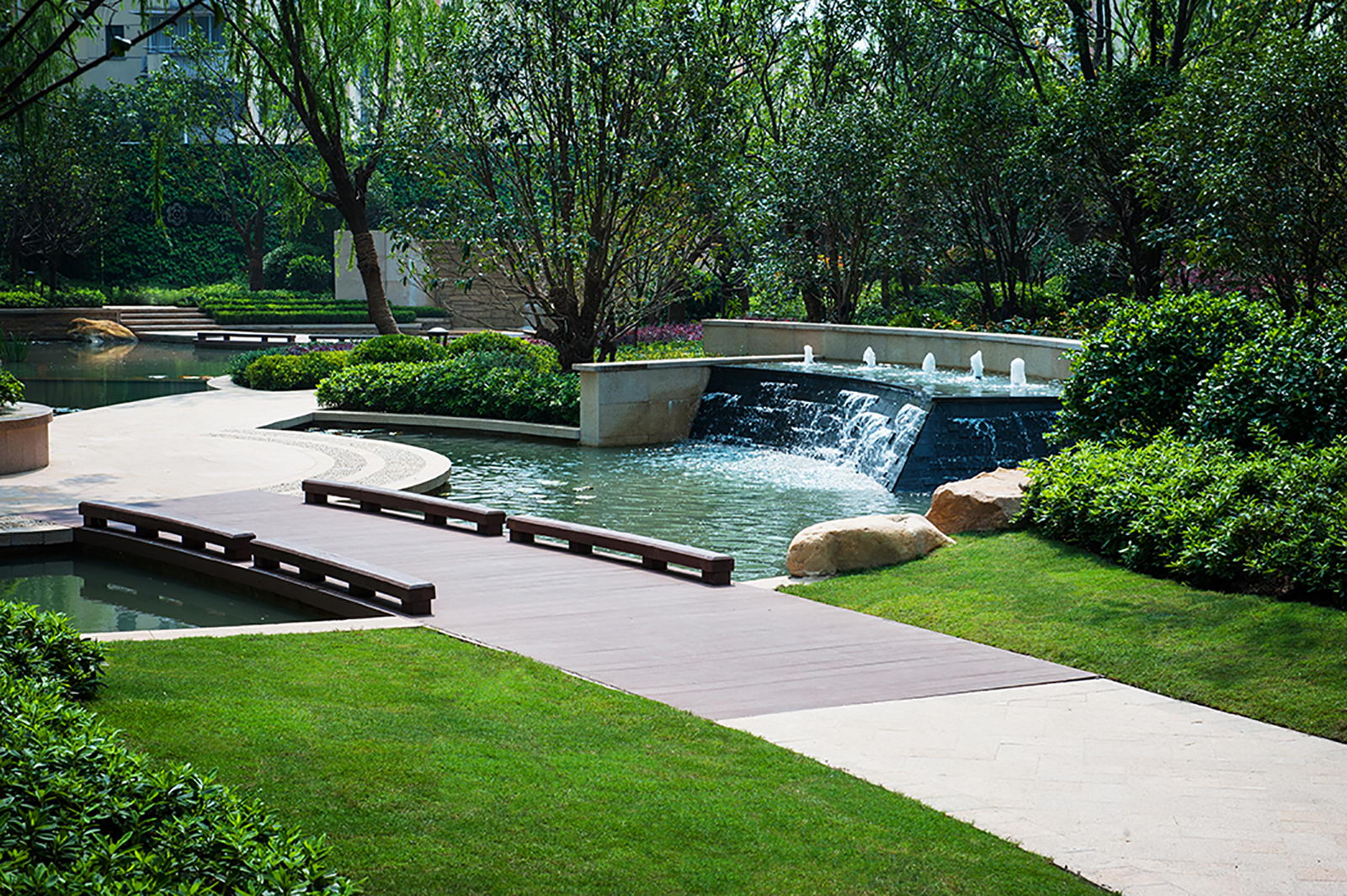 整個小區(qū)的景觀設(shè)計在當(dāng)時借鑒日本人居設(shè)計思想,樓盤的總體定位即以高雅、藝術(shù)、自然共生為理念,融入精巧設(shè)計,對景觀細節(jié)進行了一一呈現(xiàn),疊石理水,以“水岸共生、居隱書香”為主題,構(gòu)筑蘊涵傳統(tǒng)園林的空間布局和現(xiàn)代園林精華的景觀環(huán)境。