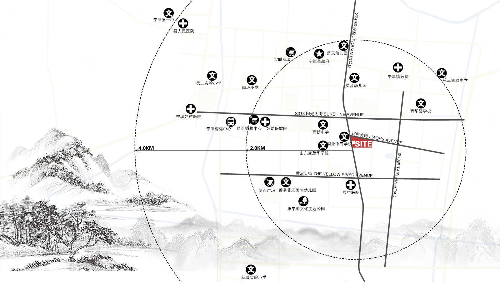 德州市位于黃河下游,山東省的北大門。歷史上,德州就是京杭大運河的一個重要碼頭,自古有“九達天衢”、“神京門戶”之稱,京滬鐵路、石德鐵路和德龍煙鐵路在此交匯,是華東、華北重要的交通樞紐。項目位于德州核心區域,正門北面遼河大街,中正巍峨,氣勢雄奇,得天獨厚。基于德州地域和項目定位,我們把北方園林的莊嚴威儀與南方園林的風雅婉約相結合。