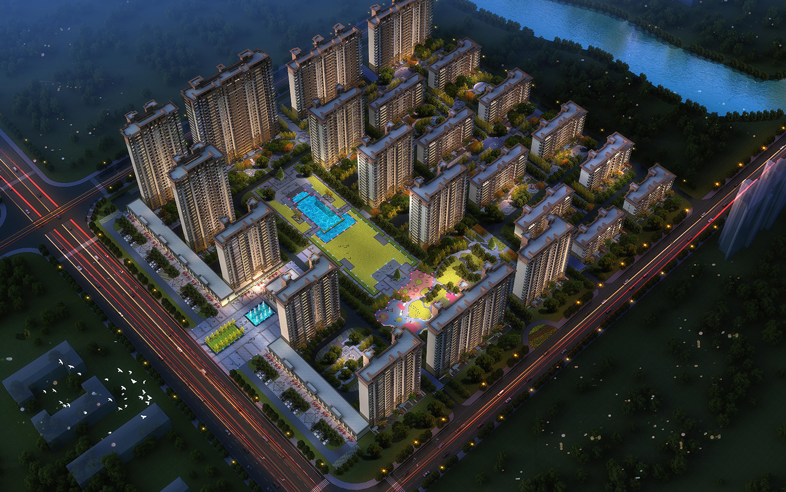 前場采用一禮(有鵲歸巢)、二迎(百鵲來迎)、三境(鵲廊鏡水)設計手法,入口禮儀廣場、景觀燈柱禮賓歸家,百鵲來迎景墻引導賓客進入場景,通過風雨連廊,見中軸線大尺度水景,藏風納氣。水景大氣通透,煙波浩渺,禮儀燈光步道,靜謐舒心,大氣、精致、從容。