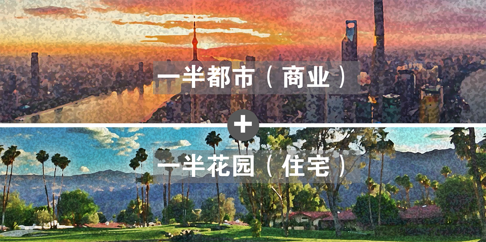 設(shè)計(jì)理念:依據(jù)建筑風(fēng)格與布局,設(shè)計(jì)提出一半都市、一半花園的設(shè)計(jì)理念。