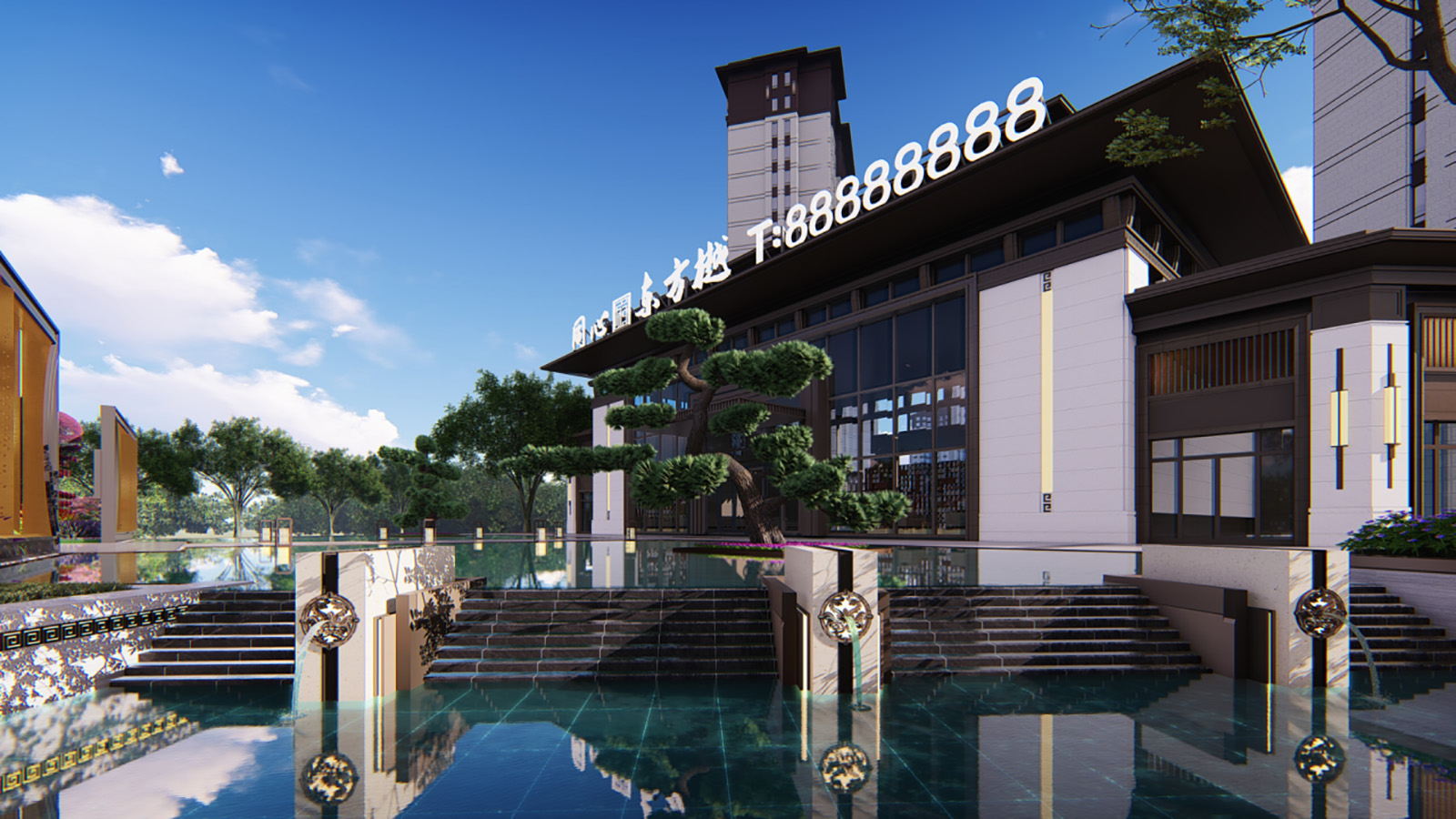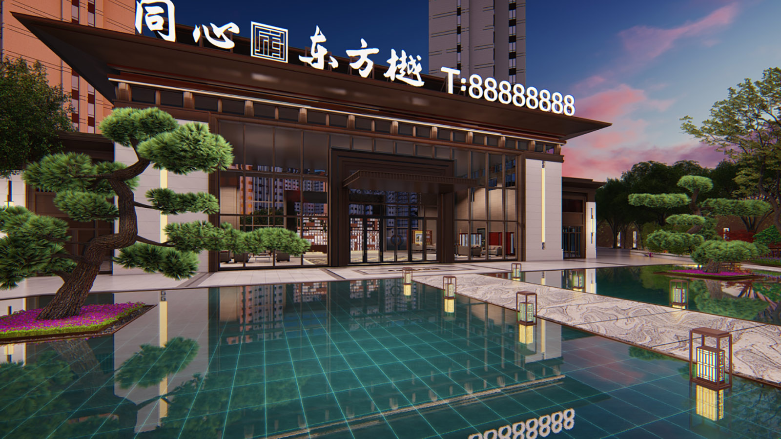 售樓部?jī)?nèi)望出如身居山川秘境,氣象萬(wàn)千,胸有丘壑,目存山河。