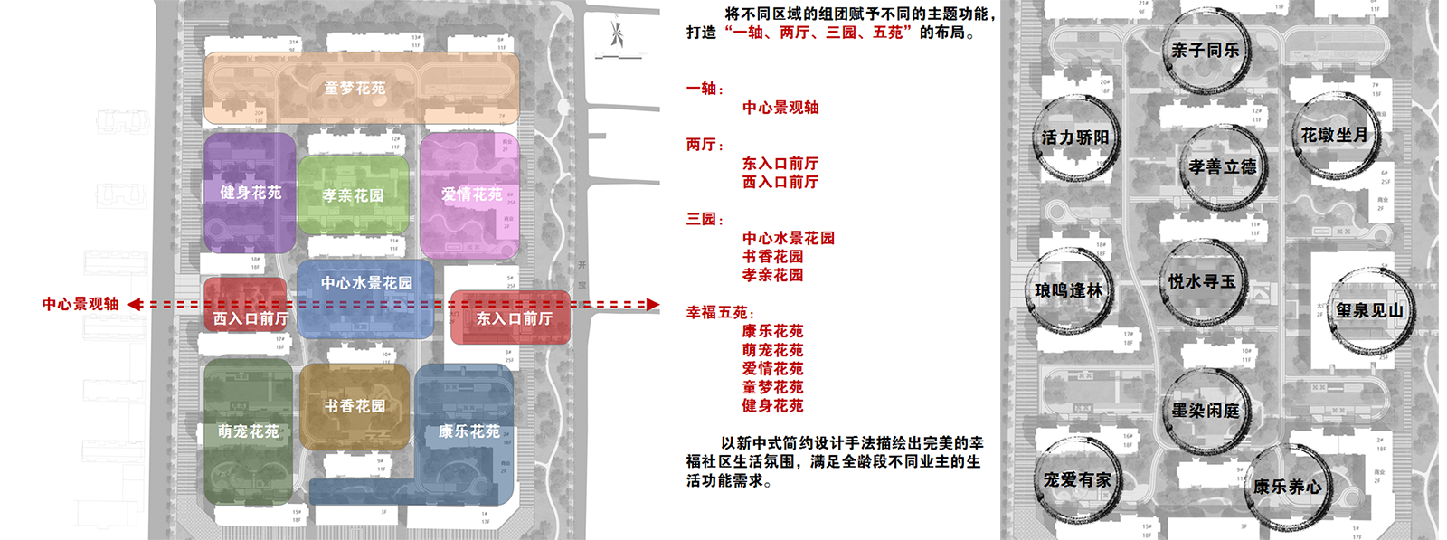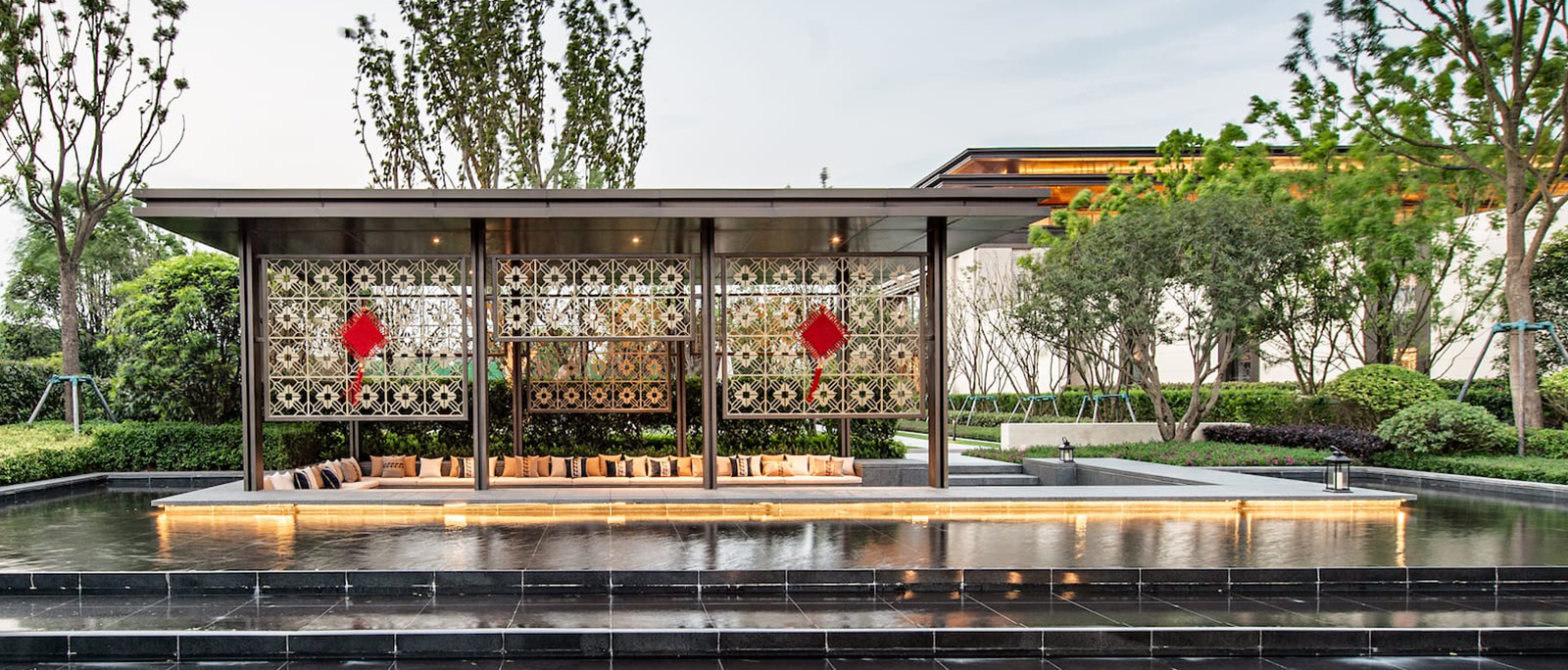 景觀延續(xù)新中式風(fēng)格,采用當(dāng)代的景觀設(shè)計(jì)語言表現(xiàn)傳統(tǒng)中國園林的精神內(nèi)涵,將現(xiàn)代元素和傳統(tǒng)元素有機(jī)的結(jié)合在一起,以現(xiàn)代人的功能需求和審美愛好來打造富有傳統(tǒng)韻味的園林景觀,讓傳統(tǒng)藝術(shù)在當(dāng)今社會(huì)得到合適體現(xiàn)。