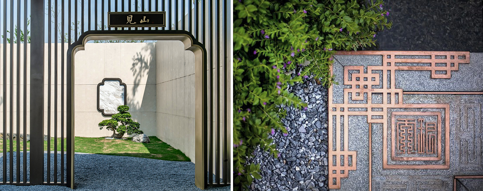 “璽”至高無上也,“瑯”從玉,良聲,形容似玉的美石,在每一進(jìn)空間中,融入展現(xiàn) “玉石氣質(zhì)” 的景觀元素,形成整體景觀亮點(diǎn)。